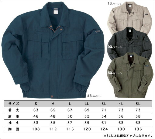 綿100% ジャンパー TOP JAUNTY 【作業服・作業着】 価格: 2,520円 レビュー評価:4.0 レビュー数:1 綿100%の作業服です。キャンバス地だからハードワークにも耐えうる耐久性を持つ商品です。また、バイオウォッシュによる程よい色落ち、シリコン柔軟によるしっとりとした肌ざわり、とても優れた商品です。バイオウォッシュ加工により色を落としています。実際の色と多少異なります、御了承ください(注:色を落としてありますので黒は真っ黒ではありません。) サイズ S M L LL 着丈 63 65 67 69 肩巾 46 48 50 52 袖丈 53 55 57 59 胸囲 108 112 116 120 Supported by 楽天ウェブサービス |